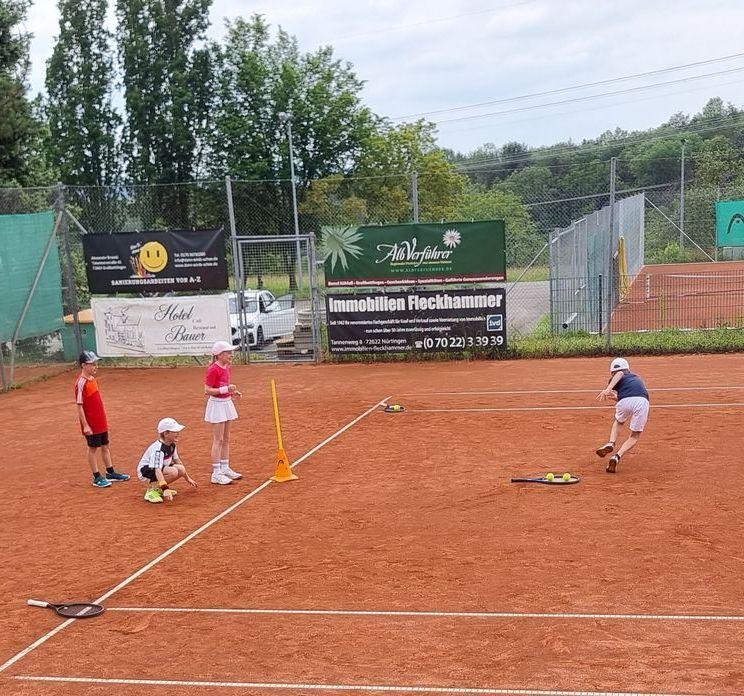 On Sunday, June 30th, our U10 team had a home game against Riederich. Despite grey skies and rainy forecasts, the mood was good and the kids were very motivated. The Großbettlingen children won one relay, the other three were narrowly won by their opponents from Riederich. Nevertheless, the children started their singles matches optimistically. Luca, Eloise, Jan and Jonas played for Großbettlingen. Luca was up against a strong opponent and there were many great rallies between the two. Luca stayed on the ball and fought. His efforts were rewarded and he left the field as the winner after 2:4, 4:2 and an exciting match tiebreak (8:6).